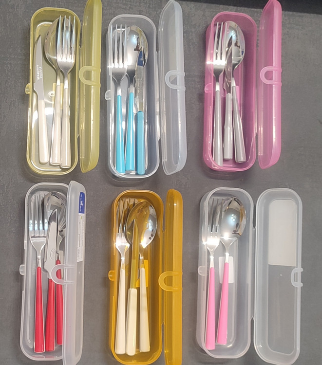 ست قاشق و چنگال و کارد یک نفره ،رنگ بندی متفاوت، مناسب کارمندان، مسافران و ورزشکاران، پک مناسب هدیه جهت ادارات و سازمان ها